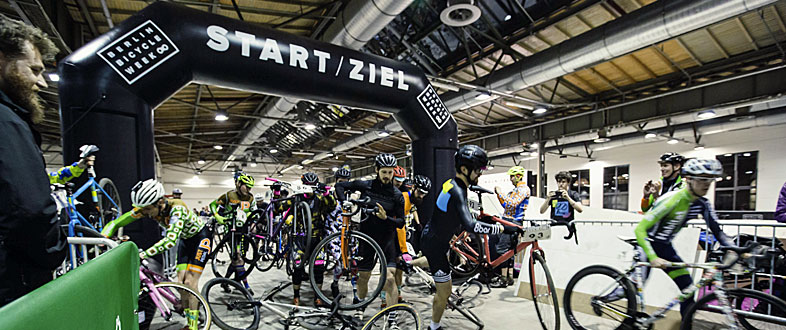 Mit der Fahrradschau im März hat nun auch Berlin seit einigen Jahren seine eigene Fahrradmesse. Als Partner des Eventbereichs haben wir bereits zweimal ein Crossrennen durch die Hallen der Station Berlin und deren Hinterhof organisiert, eben Junkyardcross. 2016 kamen noch die Jungs von Bombtrack mit ihrer Singlespeed-Cross-EM dazu. Das Bild zeigt deren Le Mans-Start.