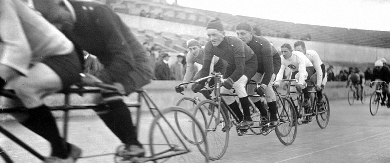 Die Vorfahren der heutigen Radkuriere waren die Zeitungsfahrer. Viele Radrennfahrer verdienten mit dem Transport der Tageszeitungen von den Druckereien zu den Verkaufsstellen ihr Brot. Auch entsprechende Rennen wie auf dem Foto gab es.