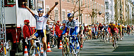In der Bergmannstrasse lag das Ziel des anderen Kreuzberger Radsport-Klassikers. "Rund in Kreuzberg" war die Berliner Antwort auf Paris-Roubaix. 1,5 von 2,2 Kilometern jeder Runde waren über Kopfsteinpflaster zu absolvieren. Sowohl die Frauen-Rad-Bundesliga als auch viele Spitzenamateure waren auf dem harten Kurs am Südstern unterwegs. [Filmbericht von 1971]