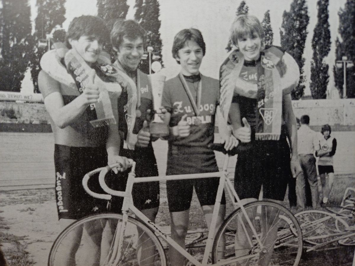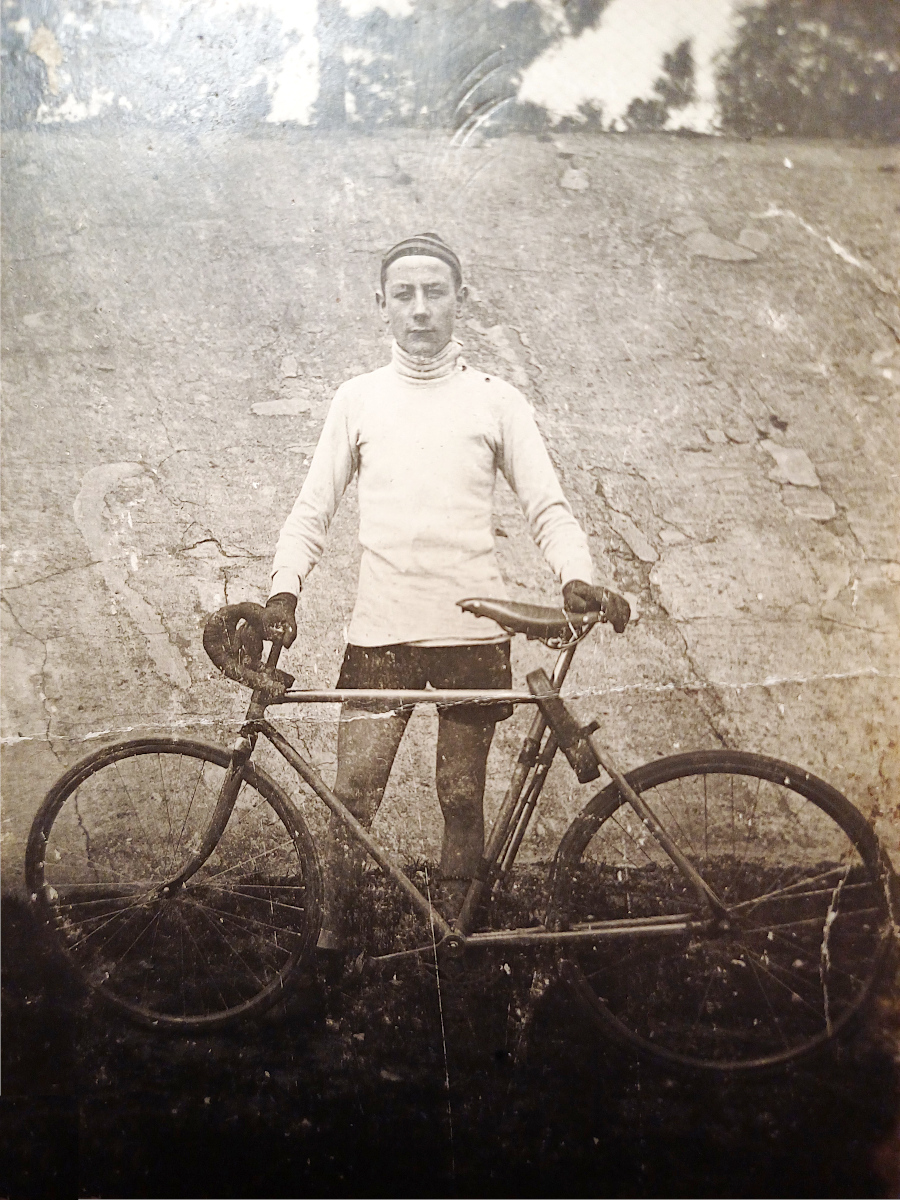 "Mein erster Renner 1923" steht auf der Rückseite des Fotos. Der junge Zugvogel-Renner wurde abgelichtet am "Nudeltopp", der steilen Treptower Radrennbahn.