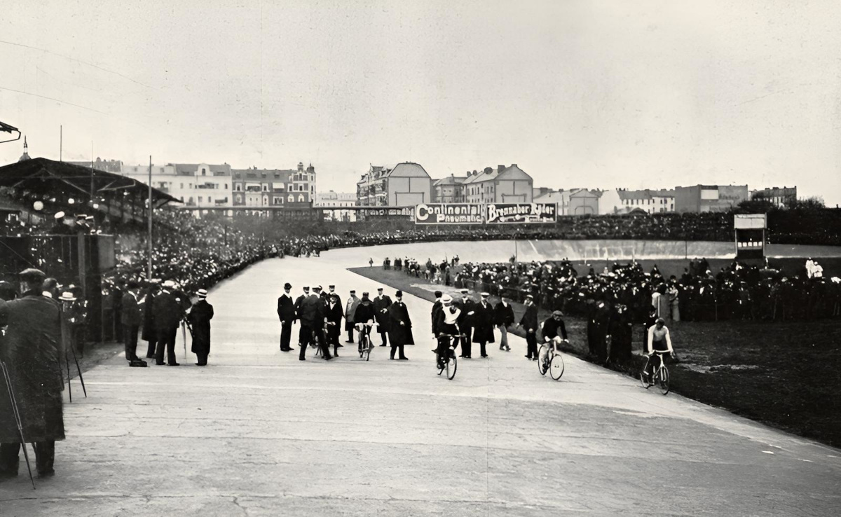 Radrennen auf der Bahn im "Sportpark Friedenau" im Jahre 1903.